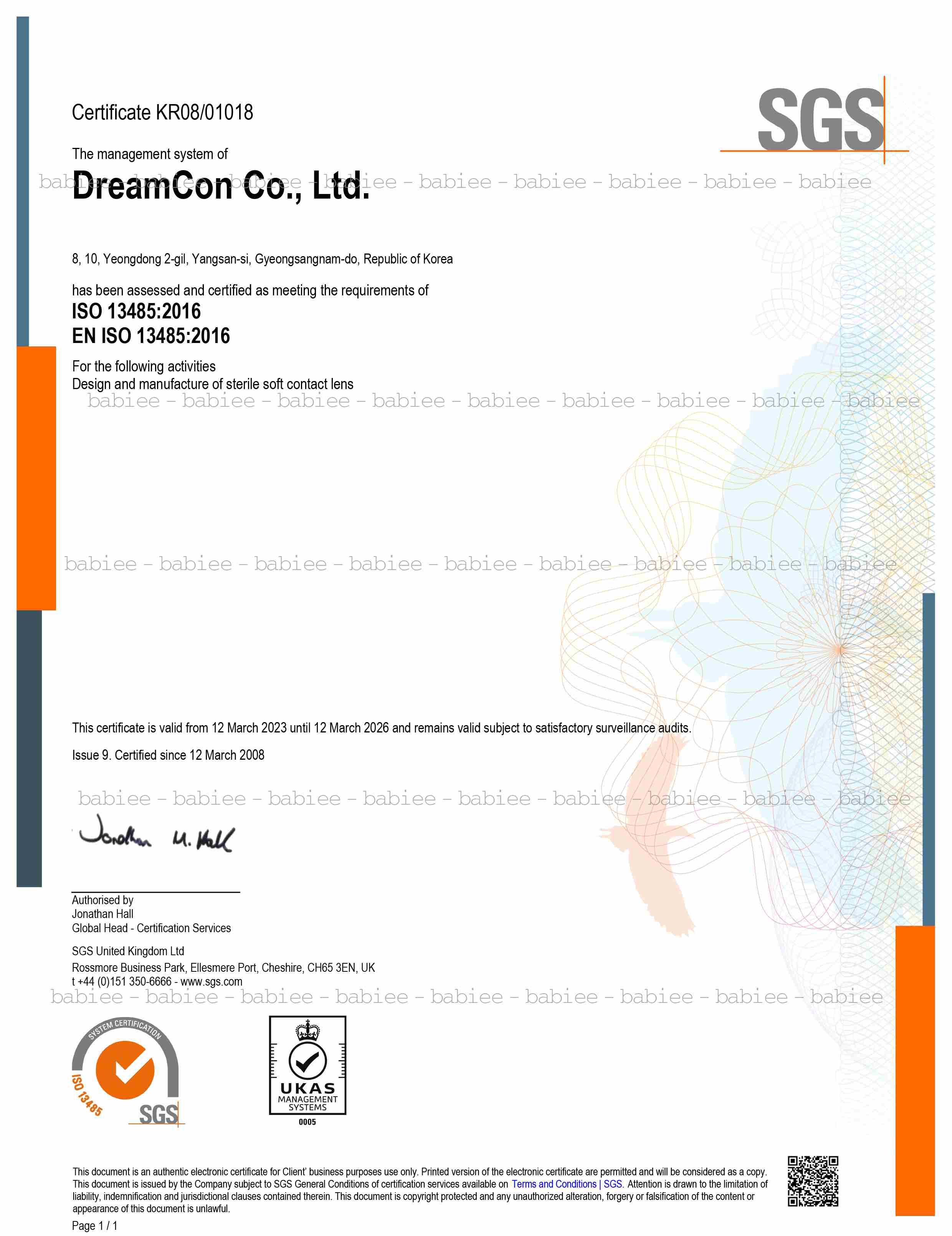 GIẤY CHỨNG NHẬN CHẤT LƯỢNG SẢN PHẨM ĐẠT TIÊU CHUẨN ISO-13485 - BABIEE