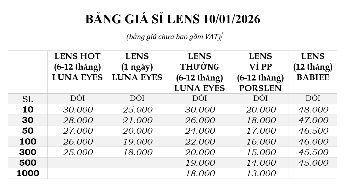 - Sản phẩm bị lỗi do nhà sản xuất như bị rách, bị mất góc, không có lens bên trong lọ,.. KH vui lòng chiếu đèn flash vào sản phẩm để kiểm tra tình trạng lens trước khi khui nắp (thời gian bảo hành trong vòng 3 tháng kể từ khi KH nhận được sản phẩm và chỉ áp dụng đối với sản phẩm chưa khui nắp).