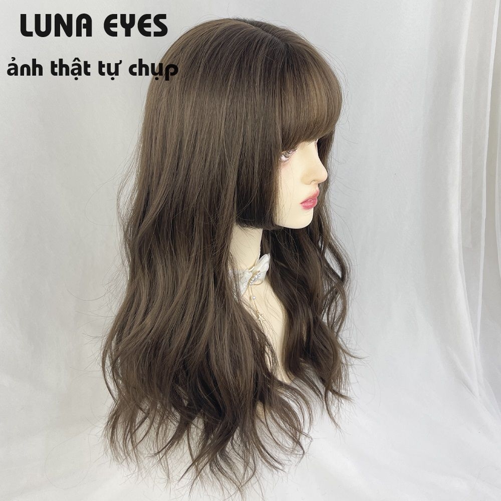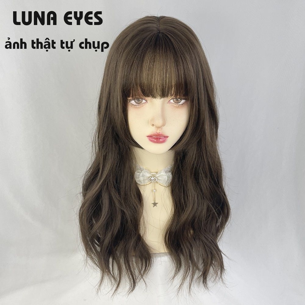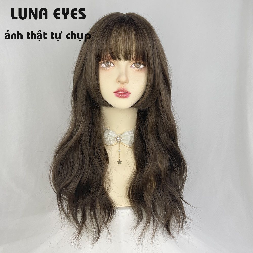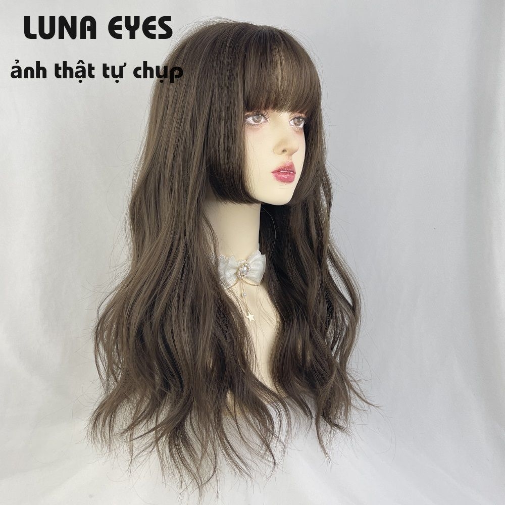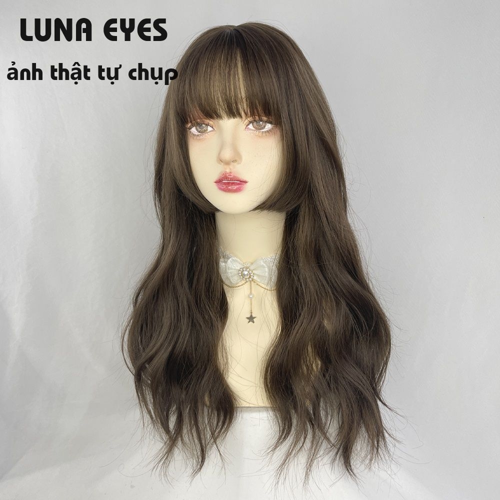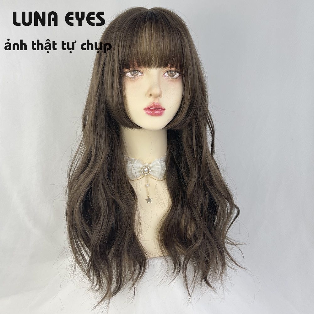 [JG137] Tóc Giả Xoăn Dài Mái Hime Màu Nâu Lạnh