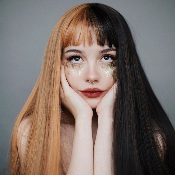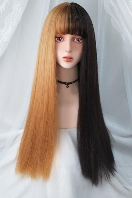 [TS59] Tóc Giả Thẳng Dài 2 Màu Đen Vàng